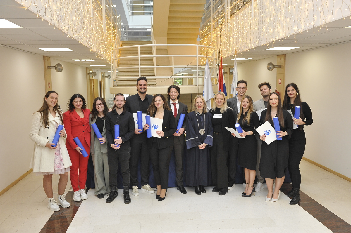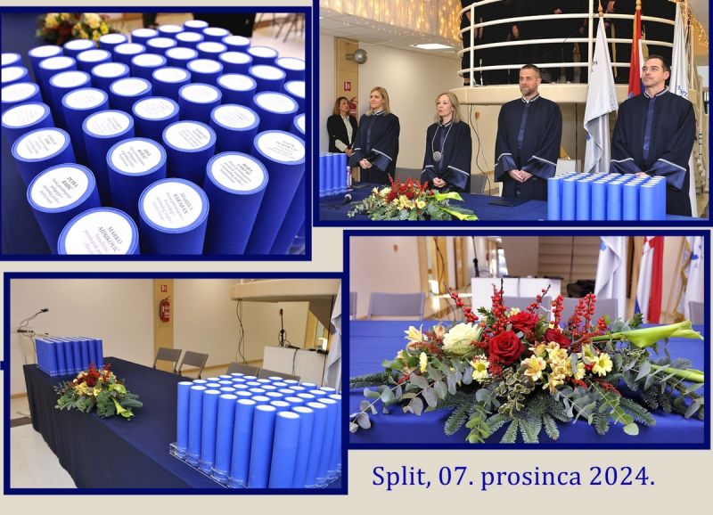 U subotu, 7. prosinca 2024., održane su dvije svečane promocije na kojima je ukupno promovirano 164 prvostupnica i prvostupnika našeg Fakulteta. Promotori su bili: dekanica prof. dr. sc. Ina Reić Ercegovac, prodekanica za nastavu i studentska pitanja izv. prof. dr. sc. Zorana Šuljug Vučica, prodekan za znanost i međunarodnu suradnju izv. prof. dr. sc. Nikša Varezić i prodekan za financije i poslovanje izv. prof. dr. sc. Vedran Barbarić. Promocijama su nazočili i pročelnici odsjeka te brojni gosti, a svečanost je svojim nastupom uljepšao i zbor Fakulteta pod vodstvom doc. dr. sc. Marija Krnića.