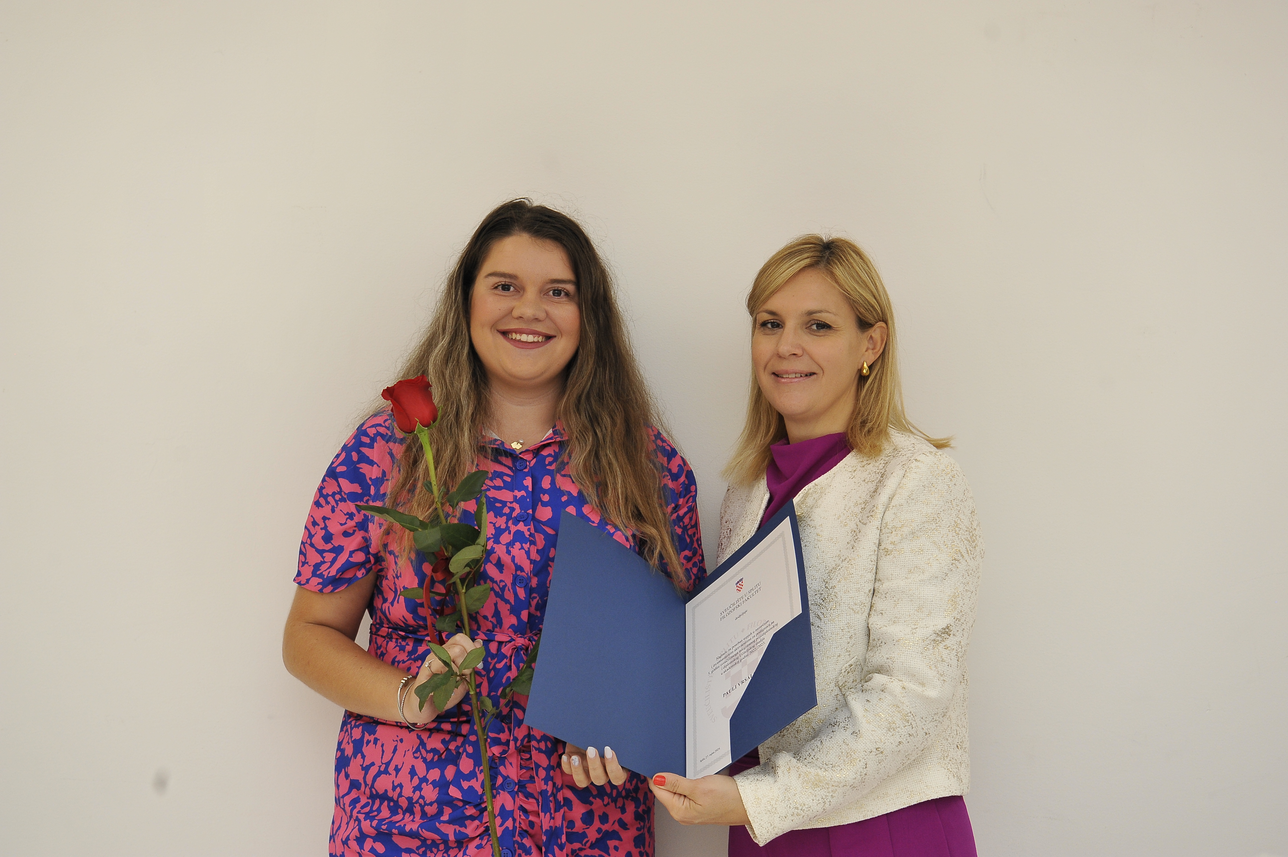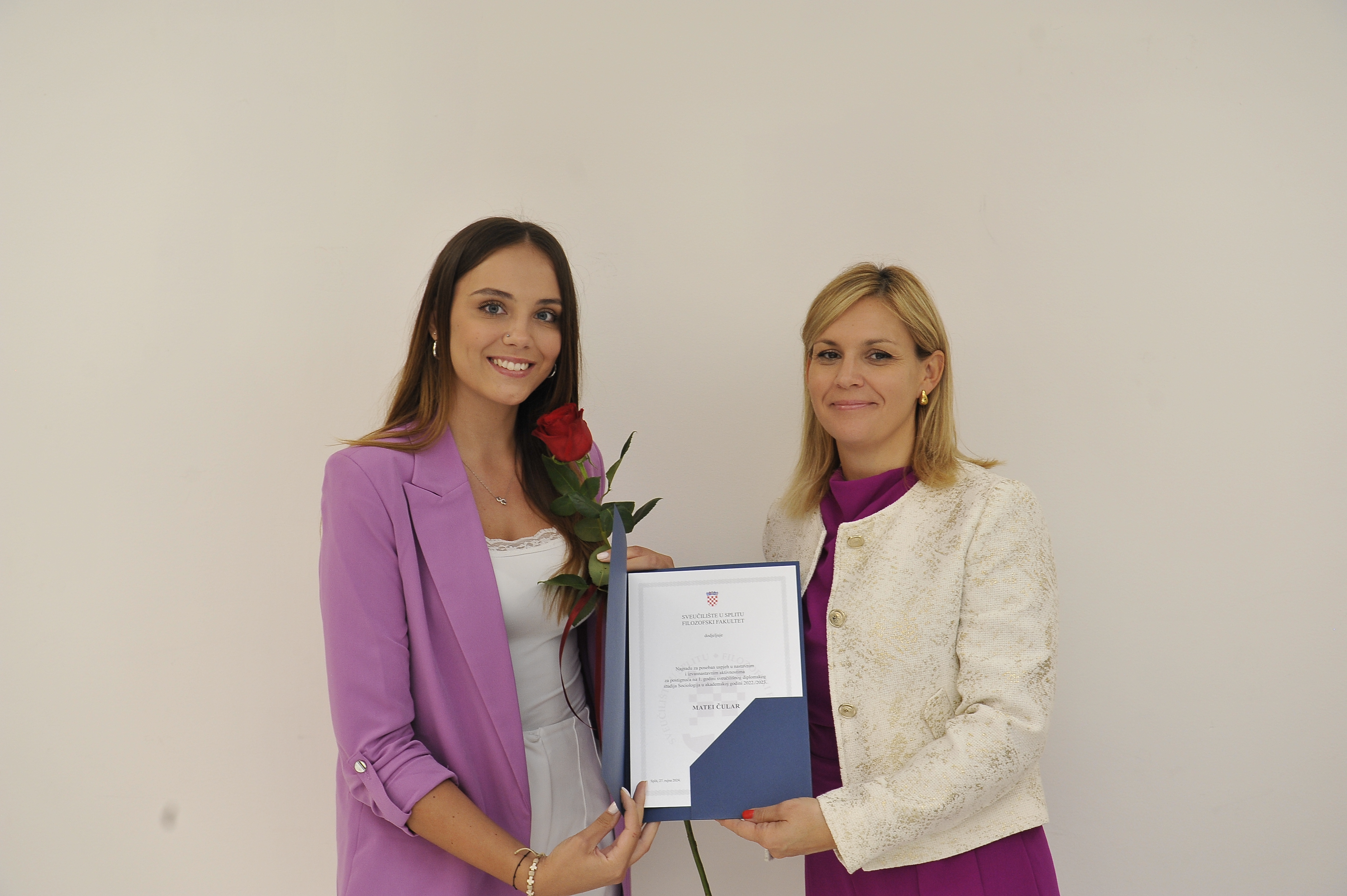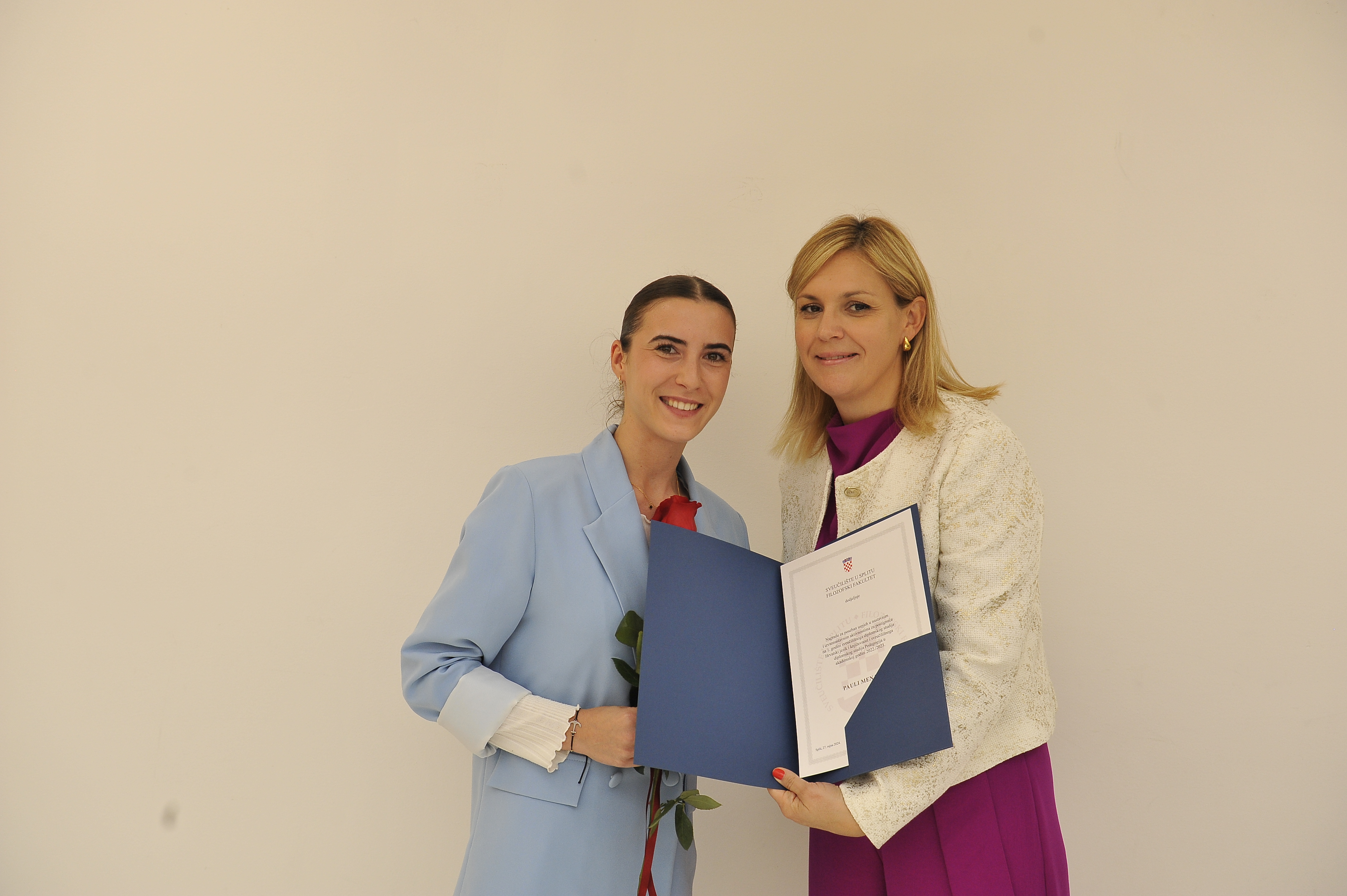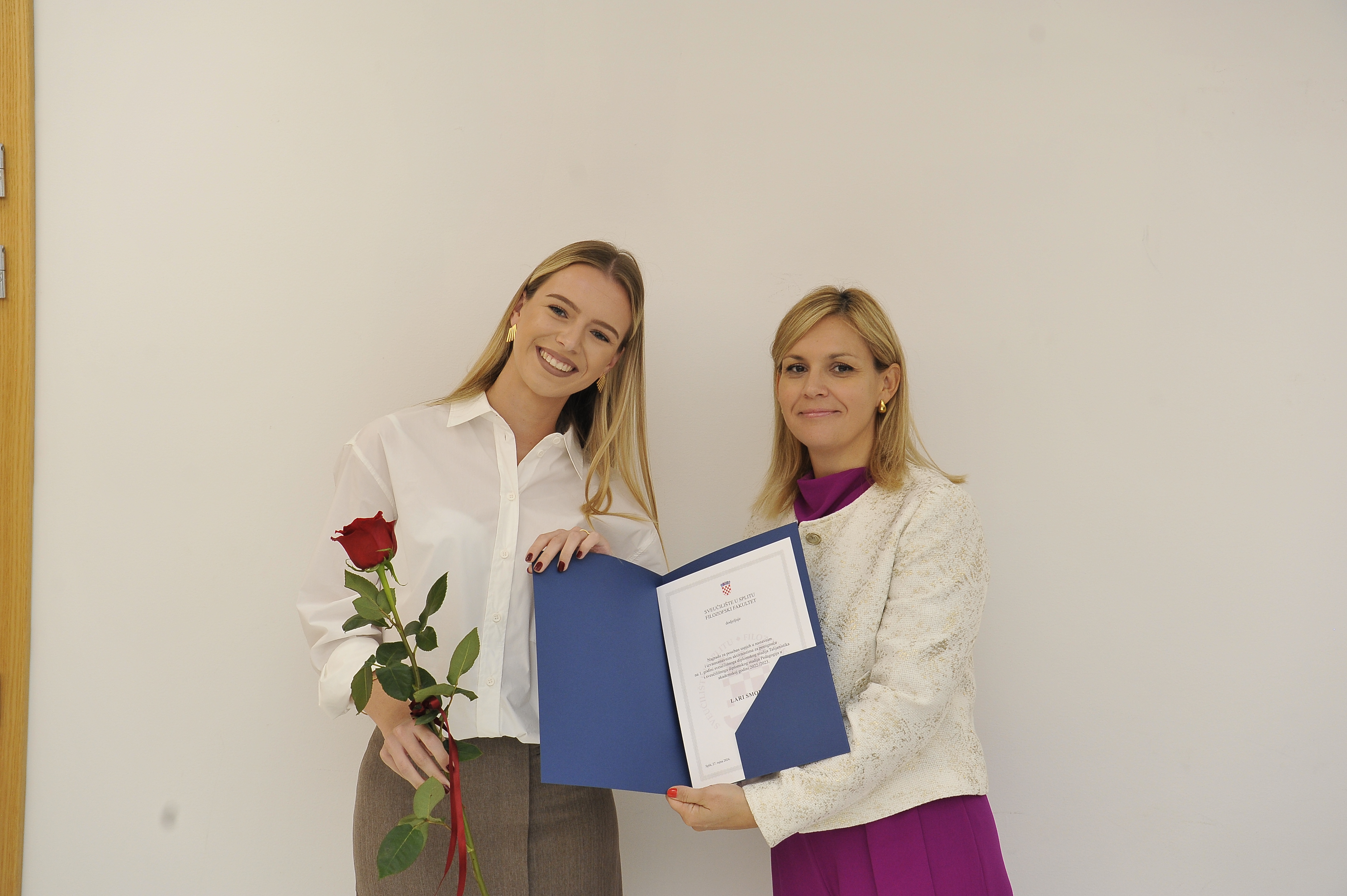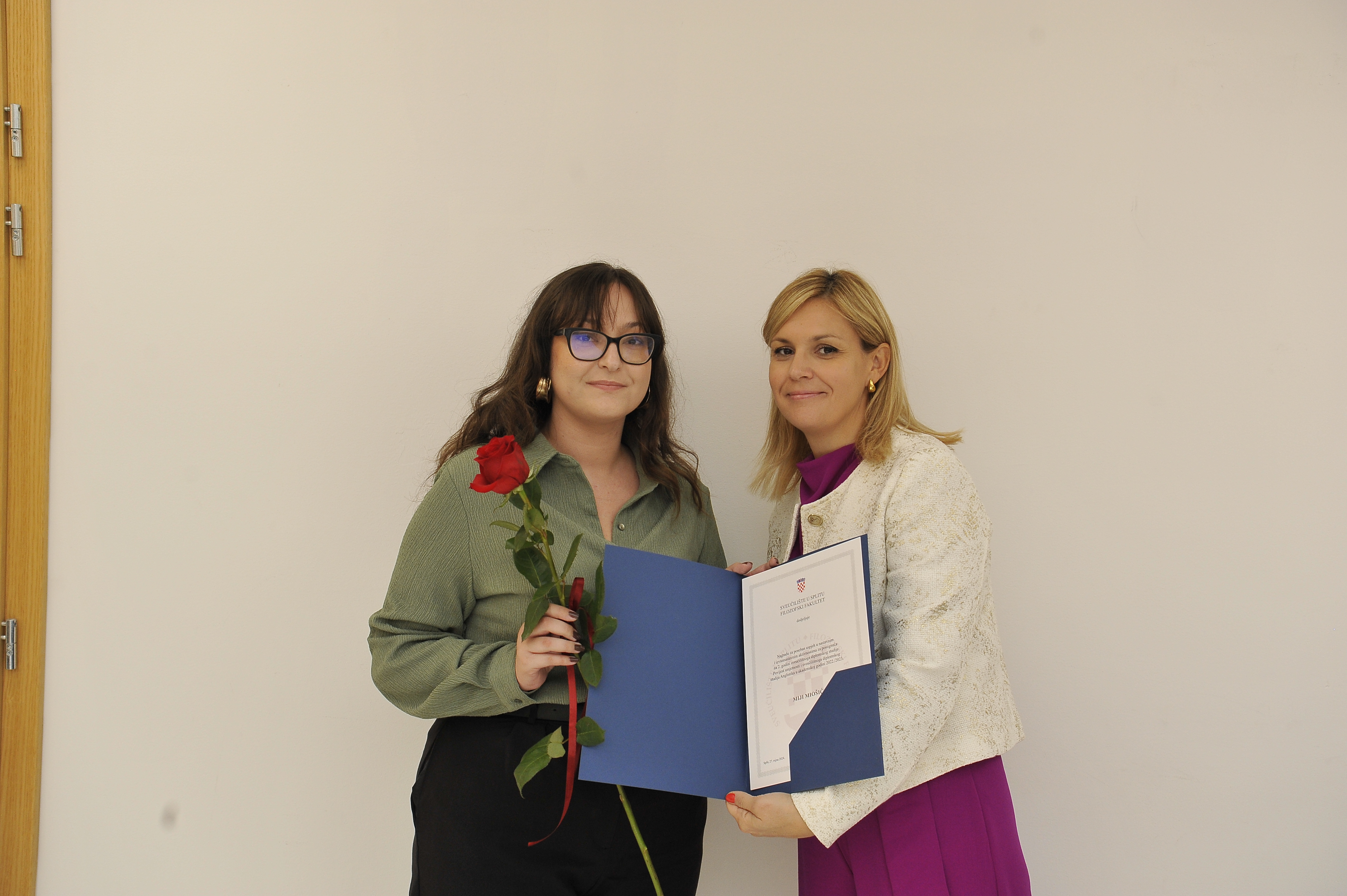 Prodekanica izv. prof. dr. sc. Šuljug Vučica je u nastavku podijelila priznanja za studentska postignuća u akademskoj godini 2022./2023.. Priznanje su dobili Ana Ćukušić, Matea Čular, Zlatko Galić, Renata Kovačić, Nina Krnjaić, Paula Menalo, Antonija Mihovilović, Mia Miošić, Lara Smolić, Anamarija Špar i Paula Vrsalović.