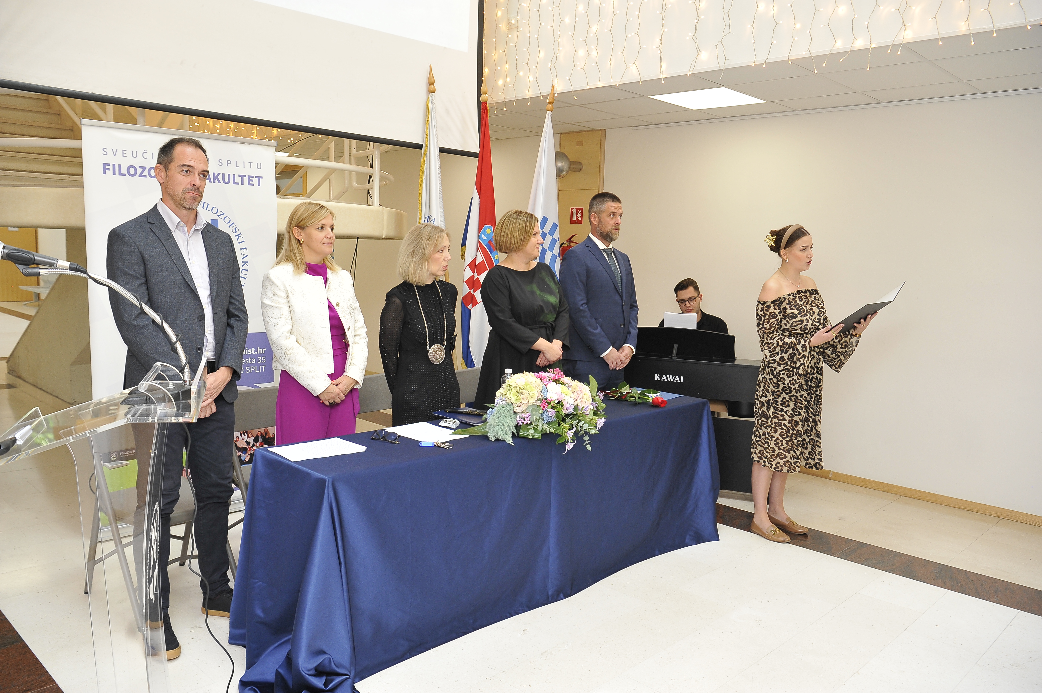 Dana 27. rujna 2024. godine, održana je svečana sjednica Filozofskog fakulteta u Splitu. Na sjednici su prisustvovali rektor Sveučilišta u Splitu prof. dr. sc. Dragan Ljutić, pročelnica Ureda rektora gđa. Ivana Pletković te predstavnici uprava s drugih sastavnica, profesori, studenti i brojni gosti. Uvodnu riječ je uputila dekanica prof. dr. sc. Ina Reić Ercegovac nakon čega je rektor Sveučilišta čestitao nagrađenim studentima, djelatnicima i suradnicima Fakulteta, prisjećajući se povijesti i razvoja Fakulteta. U nastavku svečanosti je dekanica prezentirala godišnje izvješće o radu, osvrčući se na sve uspjehe i izazove s kojima se suočio Filozofski fakultet u posljednjih godinu dana.