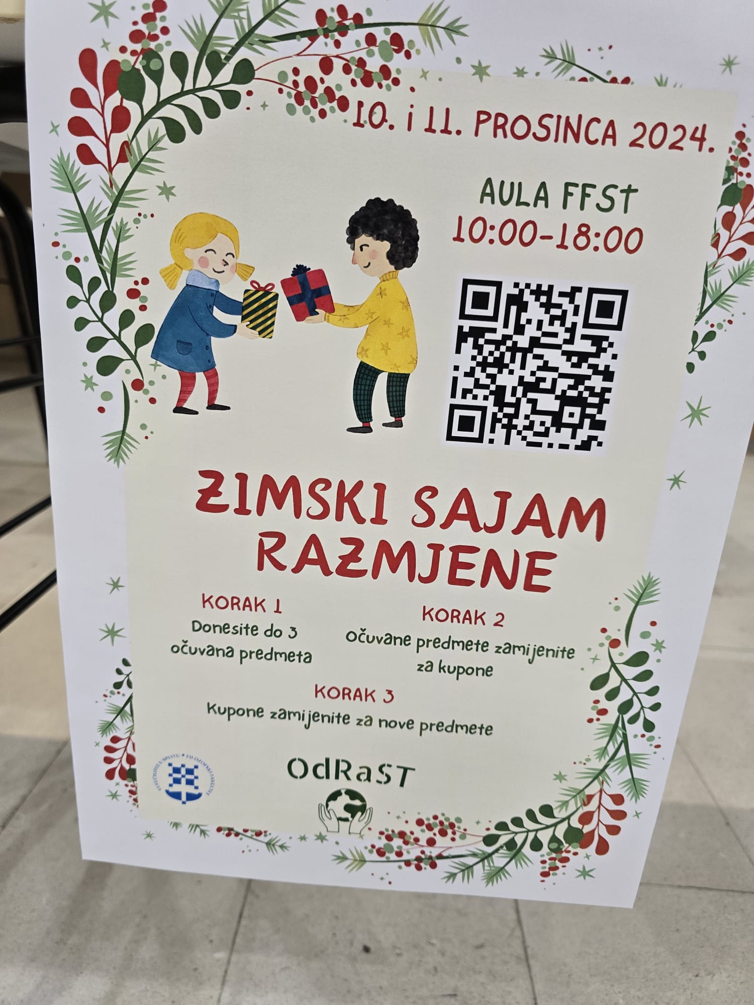 10. i 11. prosinca u auli Filozofskog fakulteta u sklopu događanja Advent na Filozofskom odrzan je još jedan Sajam razmjene u organizaciji Centra OdRaST. I ovog puta razmijenjivala se odjeća i obuća, torbe, higijenski pribor, knjige, božićni ukrasi, nakit, kozmetički proizvodi, uredski materijal i još mnogo toga, a kao novost bio je tu i Zeleni Sajam razmjene gdje se moglo razmijeniti biljke, sadnice i sjemenke. Vrijedne studentice Učiteljskog studija pomagale su svima zainteresiranima za razmjenu.