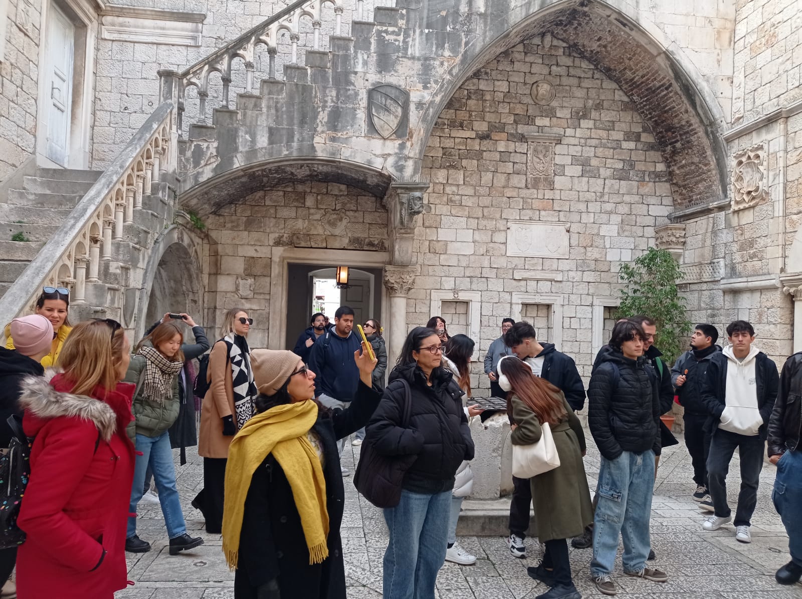 Prosinac je mjesec darivanja, druženja s obitelji i prijateljima i rezimiranja svega što se događalo cijele godine. Kako bi se svi neizvorni govornici hrvatskoga jezika koji trenutno žive u Splitu i u CEHAS-u pohađaju nastavu hrvatskoga jezika i kulture osjećali što ugodnije dok su tako daleko od svojih obitelji, pripremili smo im nekoliko iznenađenja. Tako smo s našim polaznicima na Sv. Nikolu otvorili Advent u Trogiru i uz kuhano vino družili se sa svetim Nikolom. Doznali smo da je upravo u Trogiru pronađen Kairos te da ne smijemo propustiti sreću, već moramo uhvatiti „Kairosov čuperak“ kada nam se pruži priliku, a Latinoamerikanci su u trogirskim rafiolima prepoznali empanadas. Posjetili smo također i Salonu te naučili mnoge povijesne činjenice, ali i čuli neke legende.