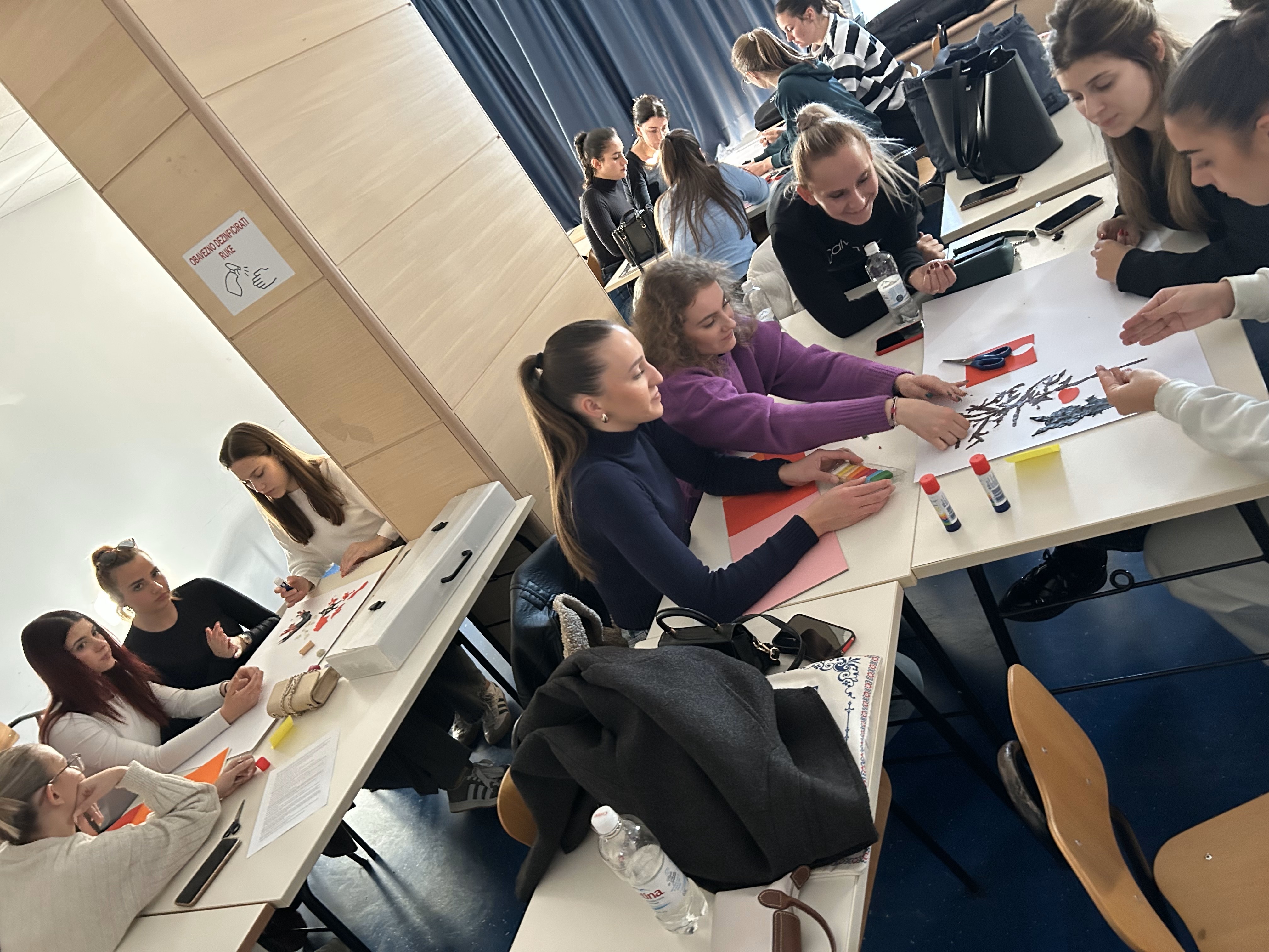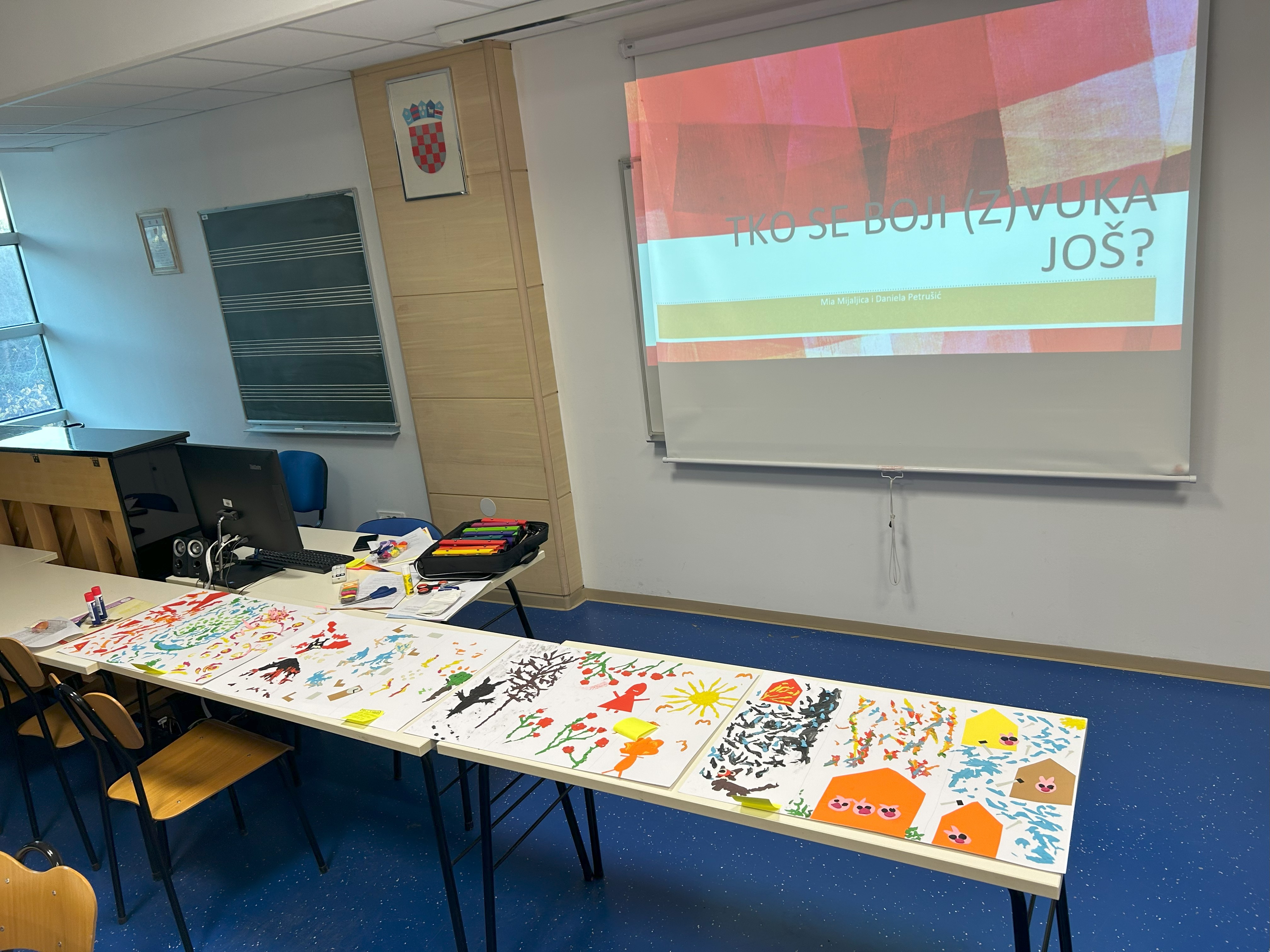 Cilj radionice je bio potaknuti studente da putem integrirane likovno glazbene aktivnosti izraze doživljaj odabranih glazbenih kompozicija putem likovnog oblikovanja bajki u kombiniranim likovnim tehnikama. Prvi dio radionice bio je rezerviran za uvođenje studenata u elemente i povezanost likovne i glazbene umjetnosti tijekom stvaralaštva. Studenti su u grupama pripovijedali odabrane bajke, te ih likovno oblikovali tijekom slušanja glazbe koja je evocirala određene emocije. Na taj način su se kroz umjetničko stvaralaštvo ispreplitali elementi likovnog izražavanja, slušanja glazbe i pripovijedanja koje su studentice interpretirale na kraju radionice. Voditeljice radionice su asistentice Mia Mijaljica i dr.sc. Daniela Petrušić (Odsjek za rani i predškolski odgoj).