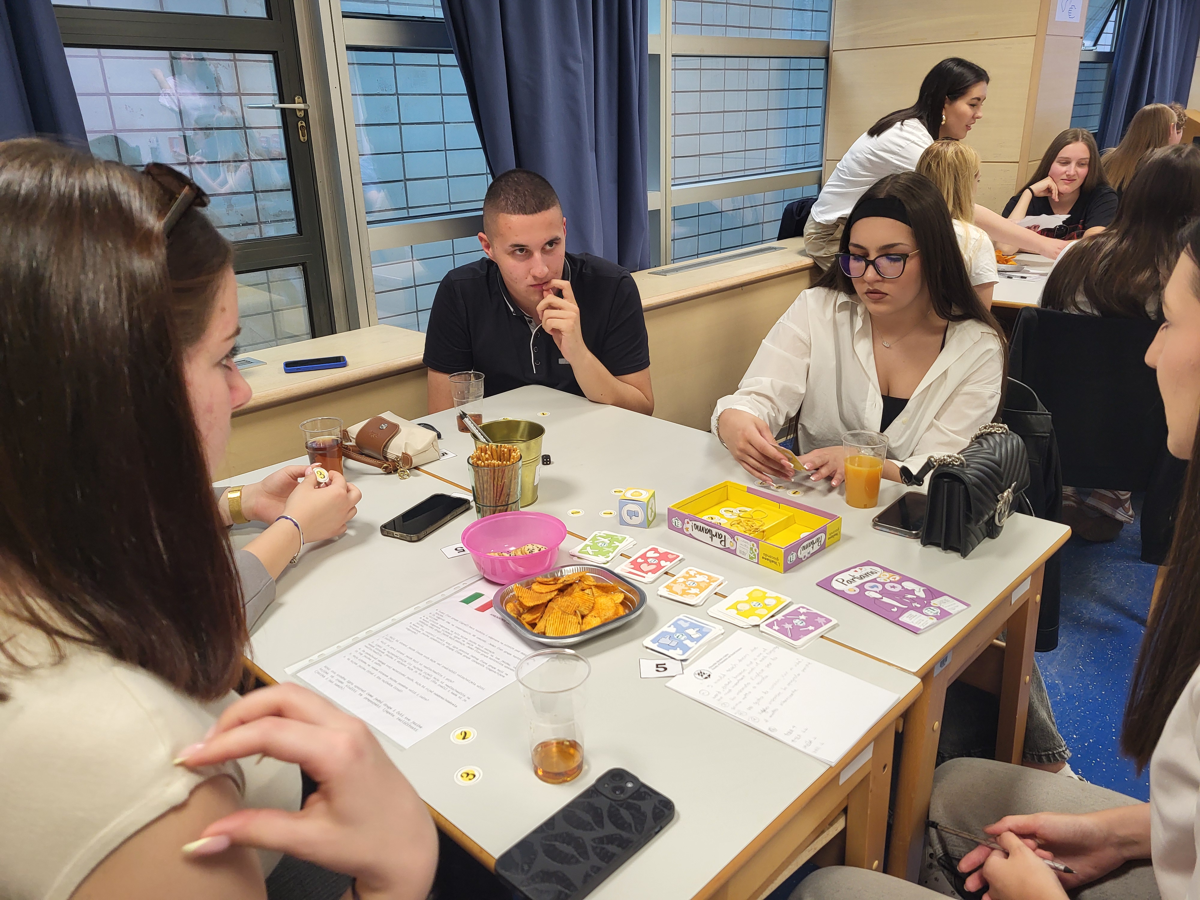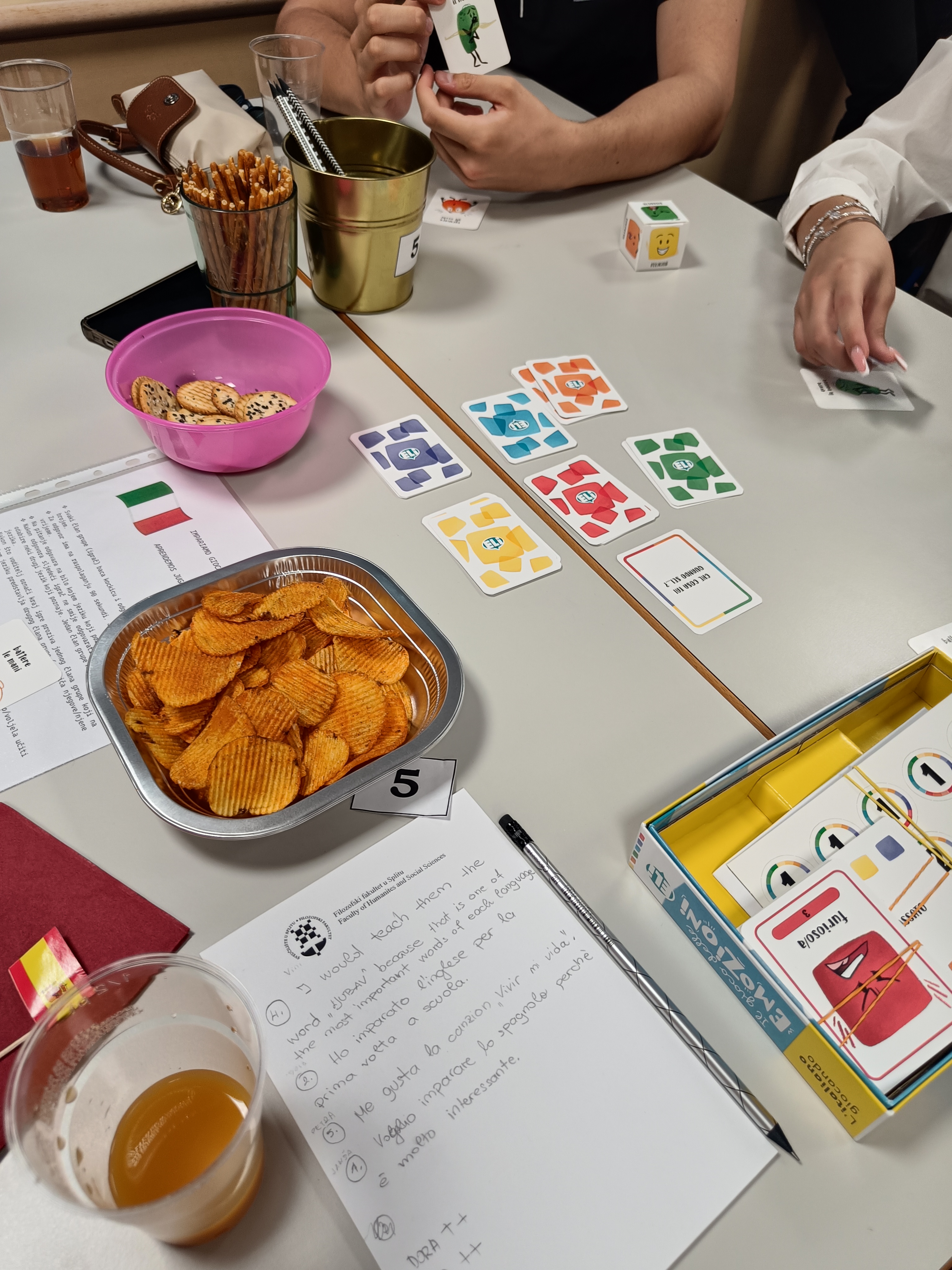 Andrei, Dori, Heli, Karli, Pauli i Sari, studenticama završne godine diplomskoga studija, igraonica je bila još jedna od prigoda u kojoj su se, kao i uvijek do sada, pokazale kao izvrsne promotorice Odsjeka za talijanski jezik i književnost.