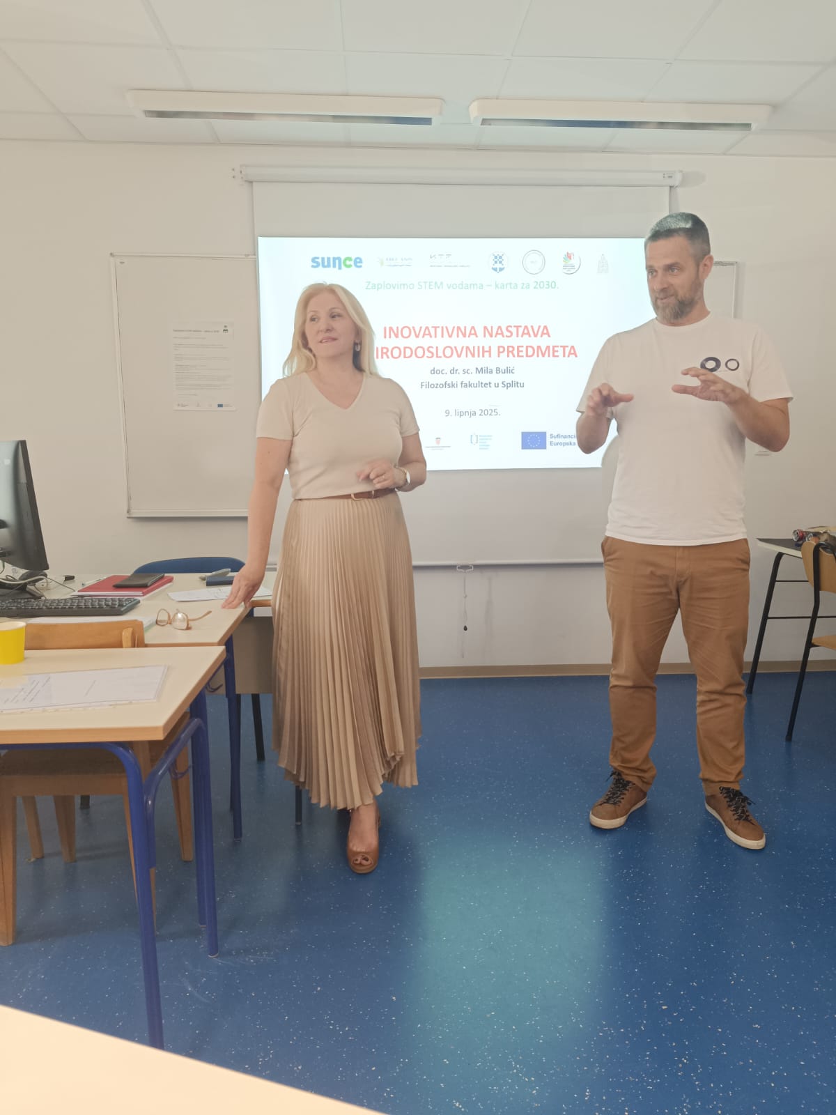 Dana 9. lipnja 2025. godine na Filozofskom fakultetu u Splitu održano je predavanje Inovativna nastava prirodoslovnih predmeta koje je okupilo širok krug sudionika, među kojima su bili predstavnici udruga, fakulteta, osnovnih škola, te studenti koji su uključeni u projektne aktivnosti.