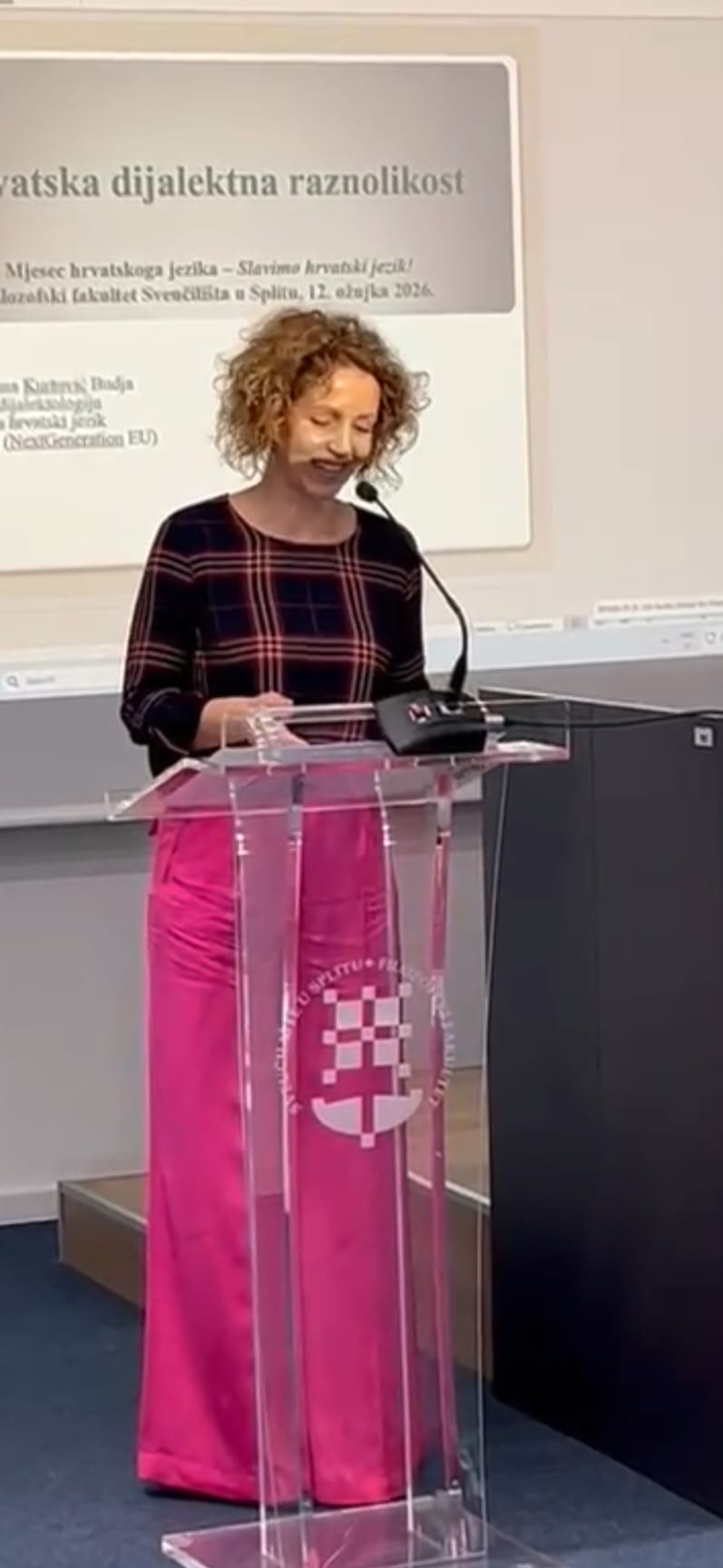 Predavanje je okupilo studente, profesore i druge zainteresirane za hrvatski jezik te potaknulo raspravu o važnosti proučavanja i očuvanja hrvatskih dijalekata. Kroz zanimljive primjere i jezične analize predavačica je predstavila kako dijalekti oblikuju hrvatski jezični identitet i kulturnu baštinu. Posebno zanimanje publike izazvalo je predstavljanje Zvučnoga atlasa hrvatskih govora, digitalnoga projekta koji omogućuje slušanje autentičnih snimki različitih hrvatskih mjesnih govora te pruža uvid u njihovu fonetsku i dijalektološku raznolikost.