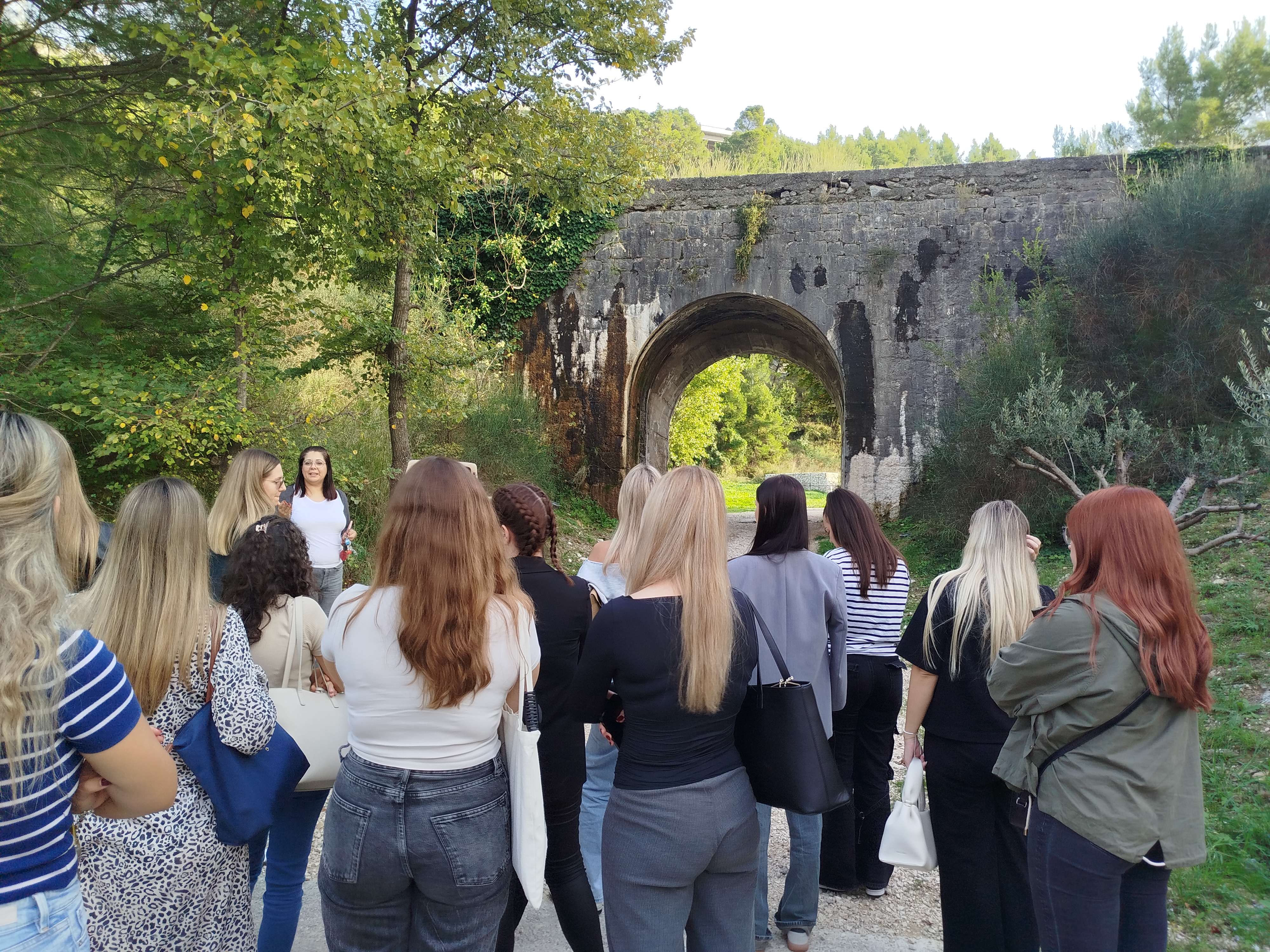 Teacher Education students as a part of the courses Introduction to Education for Sustainable Development, Impact of Climate Change, Environmental Protection, Education for Sustainable Development in Primary Education, and OdRaST Center accompanied by Prof. Marita Brčić Kuljiš, Ph.D., Ass. Prof. Vesna Kostović Vranješ, Ph.D. and Assoc. Ivana Restović, Ph.D. was on a field lesson at the Jadro Park. The excursion/park Jadro offers various facilities for learning and research and is part of a special ichthyological reserve. With expert guidance, the students and professors were first introduced to the natural and historical heritage, with special emphasis on the endemic species of soft-mouthed saltwater trout, solinka. To permanently protect the solinka, as an endemic species, and especially its juveniles, in 1984, the Jadro watercourse from the source to the Uvodić bridge was declared a special ichthyological reserve that covers an area of ​​about 78,000 m². The entire area of ​​Park Jadro is connected by footpaths enhanced by the planting of native plants. In the Soft-lipped Trout Interpretation Center, the students learned that the soft-lipped trout (Salmot obtusirostris salonitana) is an endemic species whose original habitat is in the Jadro River. Its habitat is a narrowly limited area, and the population is small, numerous contributing factors endanger the species. To protect it, the area of ​​the upper reaches of the Jadro River was declared a protected ichthyological reserve in 1984.