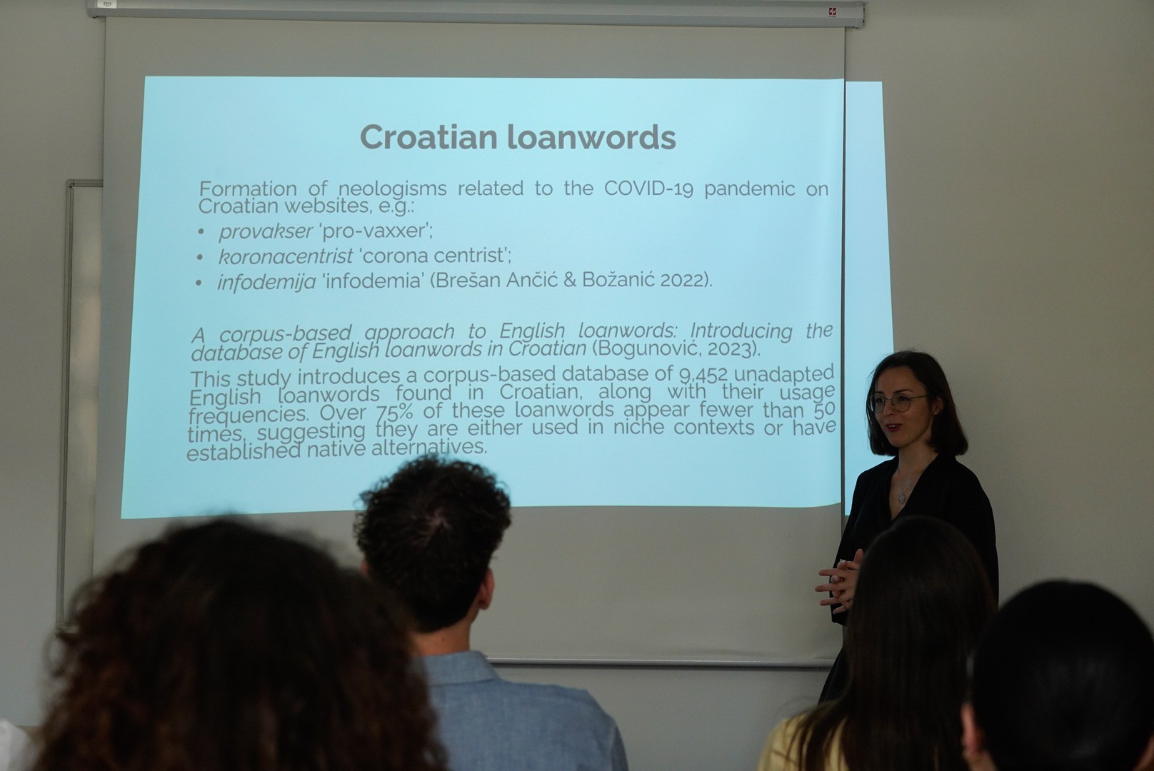 Predavanje pod naslovom A comparative analysis of the relationship between borrowings and their base words in Lithuanian and Croatian okupilo je studente i profesore zainteresirane za morfologiju i tvorbu riječi, jezike u kontaktu te semantičke odnose između posuđenica i njihovih izvornih riječi. Dr. Inčiūraitė–Noreikienė predstavila je rezultate istraživanja o lingvističkim paralelama između litavskog i hrvatskog jezika, istaknuvši na koje se načine posuđenice razvijaju u odnosu na svoje izvorne oblike te kako se značenja mijenjaju ili zadržavaju kroz jezične kontakte. Predavanje je izazvalo veliki interes i potaknulo raspravu među prisutnima.