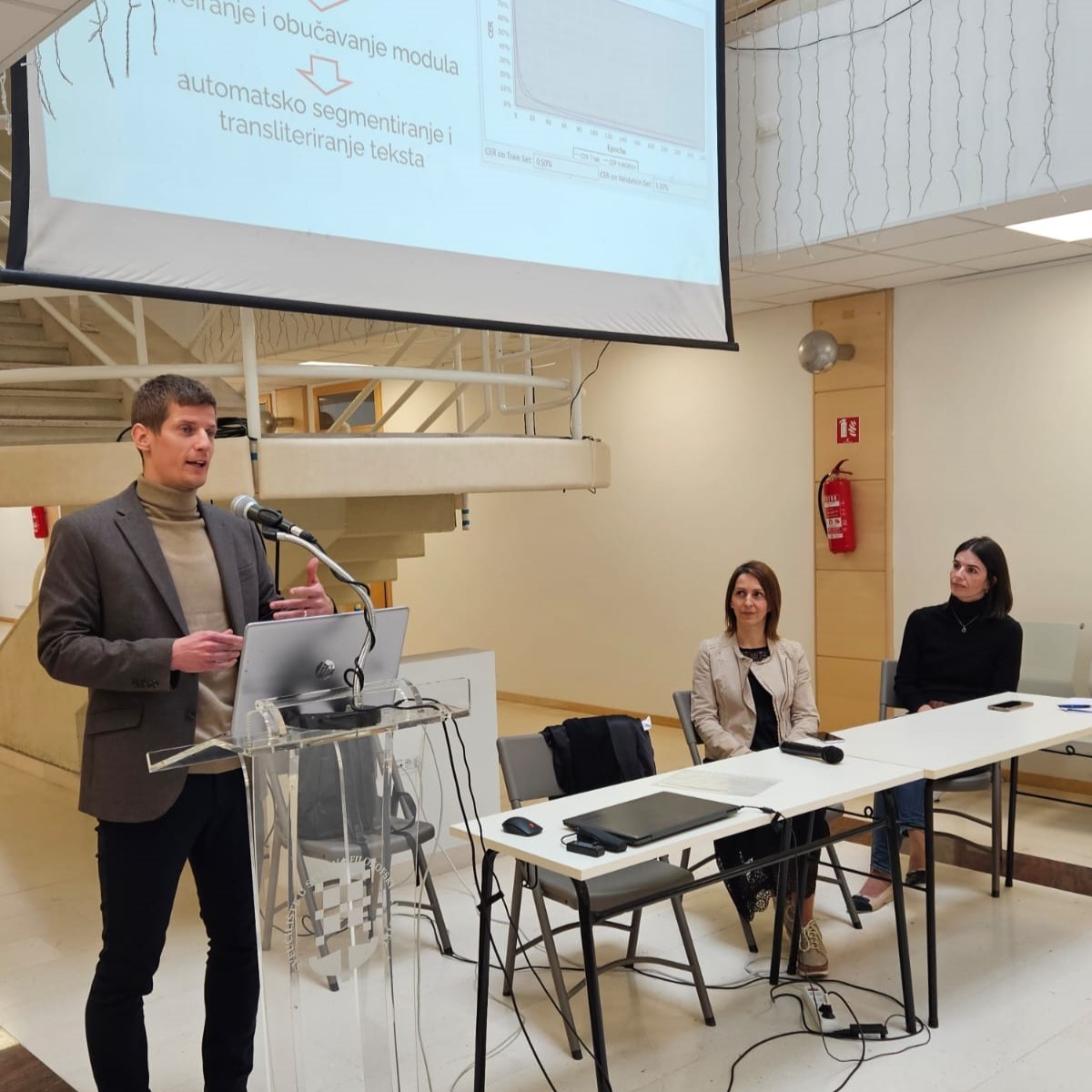 Izv. prof. dr. sc. Katarina Lozić Knezović s pomoću prikaza tekstova predstavila je kako hrvatskoglagoljska pismenost, tj. popovi glagoljaši inteligentnom domišljatošću pokazuju inovativnost pri ostvarivanju ideja i namjera koje su im bile primarne - štednje podloge za pisanje, prostora predviđenoga za pisanje, utroška vremena pisanja te „štednje“ čitača, odn. olakšavanju čitanja glagoljskih tekstova. Pojasnila je kako su to ostvarili četirima postupcima kraćenja riječi, koje zbog njihove estetske vrijednosti prihvaća i glagoljski tisak. Istaknuto je kako je, u namjeri prihvaćanja postupka ligaturiranja, izumljena je tehnika kompozitnih ligatura, što se više nigdje u povijesti inkunabula nije ponovilo. Izdvojeni su inkunabula Spovid općena, prva tiskanu knjiga na čakavštini i jedina hrvatska neliturgijska inkunabula te prvotisak Misala – prvi misal u Katoličkoj crkvi tiskan na narodnom jeziku, a ne na latinskome. Naglašeno je kako glagoljaši prvi u povijesti hrvatskoga tiskarstva (Senj) uspostavljaju tipografski znak. Nadalje je izloženo kako su u rukopisima iznalažena rješenja pri naknadnom dopisivanju ispuštenih dijelova teksta te da je glagoljični brojevni sustav dosljedan s izraženom originalnom autorskom koncepcijom koja ne slijedi grčko pismo. Dr. sc. Ana Šimić u predavanju je pokazala kako glagoljica i drugi dijelovi glagoljaške prošlosti opstaju u današnjem hrvatskom javnom prostoru te kako se prilagođavaju novim vremenima, novim korisnicima i novim značenjima koja se u njih upisuju. Predstavljene su suvremene ligature i suvremeni glagoljski natpisi u kulturi, pop-kulturi i supkulturi te prilagodbe glagoljaških motiva suvremenim marketinškim potrebama. Pritom je naglašen inovativan vid takvih praksi. Dr. sc. Josip Galić u svojem se dijelu predavanja posvetio temi strojnoga transliteriranja hrvatskoglagoljičnih tekstova, odnosno uporabi digitalnoga alata Transkribus. Poseban je fokus bio na prikazu dvaju modula koji su u Transkribusu javno dostupni za čitanje hrvatskoglagoljičnih tekstova: Handwritten Glagolitic i Glagolitic Printings. Pokazano je također kako se u Transkribusu obučavaju privatni moduli, koji u čitanju specifičnih tekstova postižu veću učinkovitost od javno dostupnih modula.