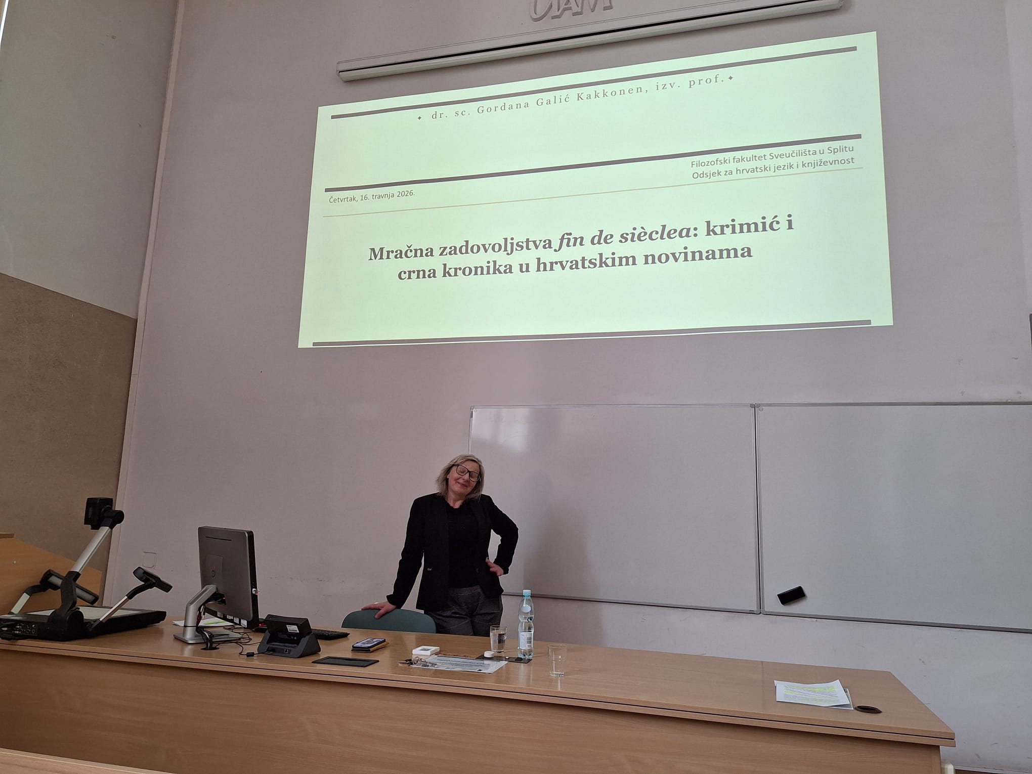 Prof. dr. sc. Marijana Tomelić Ćurlin imala je izlaganje Hrvatski dijalekti u bogatstvu i raznolikosti: metode, izazovi, istraživanja… dok je izv. prof. dr. sc. Gordana Galić Kakkonen predstavila temu Mračna zadovoljstva fin de sièclea: krimić i crna kronika u hrvatskim novinama.