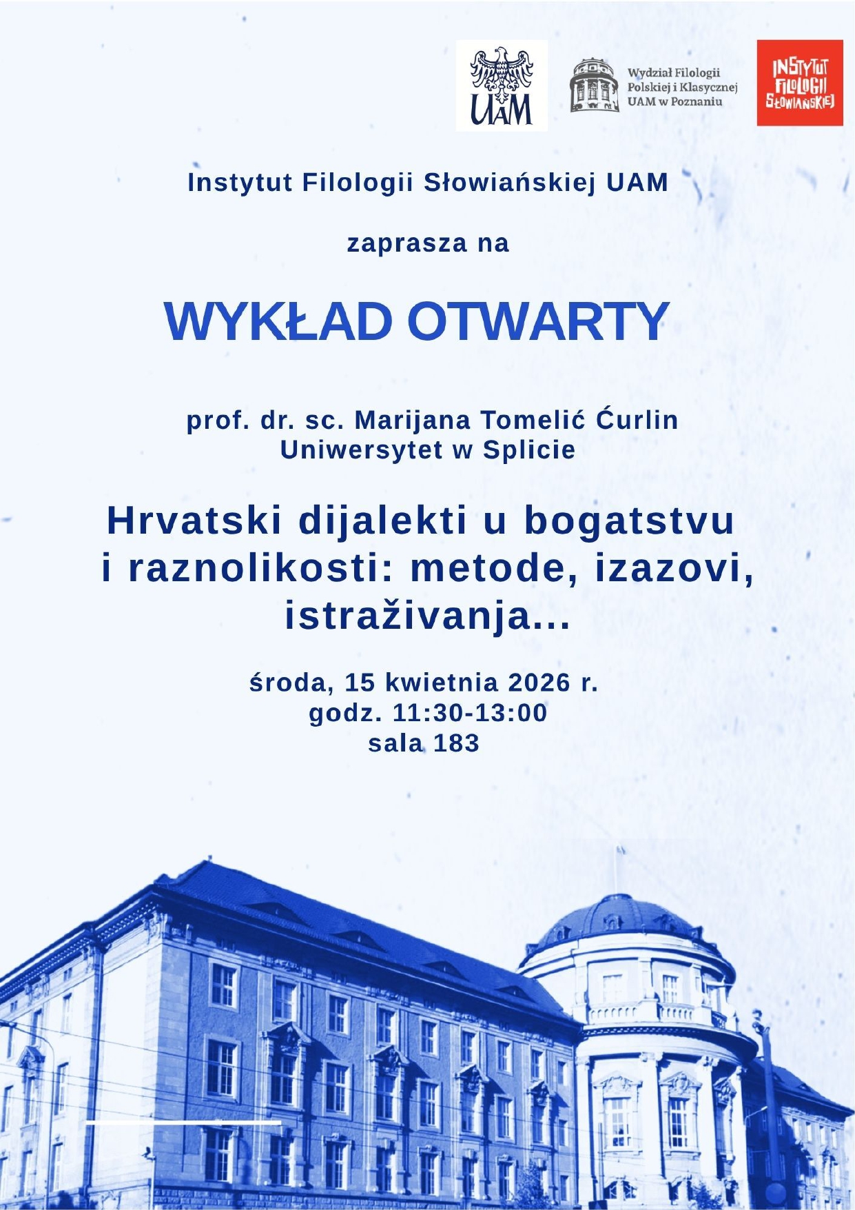 Prof. dr. sc. Marijana Tomelić Ćurlin i izv. prof. dr. sc. Gordana Galić Kakkonen s Odsjeka za hrvatski jezik i književnost održale su 15. i 16. travnja 2026. godine pozvana predavanja na Institutu za slavensku filologiju (Instytut Filologii Słowiańskiej) Sveučilišta Adama Mickiewicza u Poznanju.