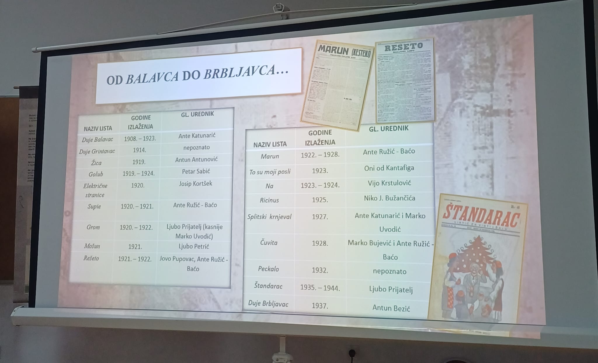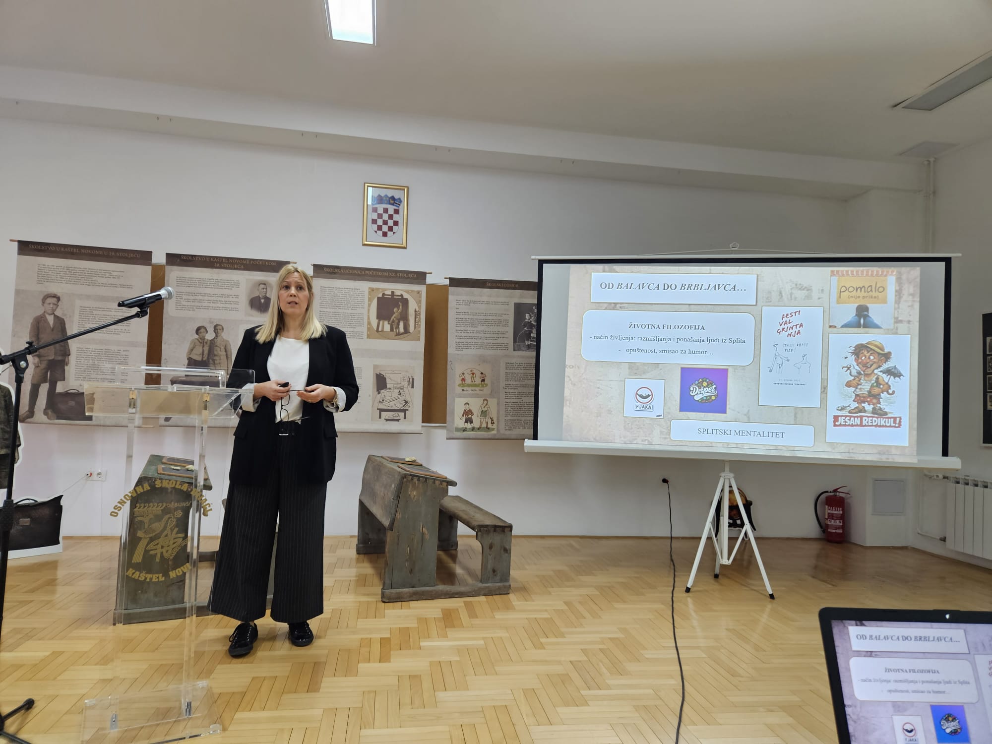 Prof. dr. sc. Marijana Tomelić Ćurlin s Odsjeka za hrvatski jezik i književnost imala je predavanje Od Balavca do Brbljavca: humor i jezik splitskog tiska (1908. – 1937.) u kojem je pokazala kako se splitska čakavica koristila kao sredstvo satire i društvene kronike u splitskim humorističkim publikacijma u prvoj polovici 20. stoljeća.