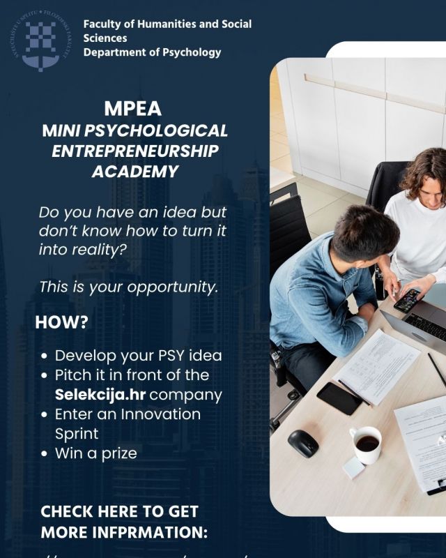 The Croatian Ministry of Science and Education has approved the new undergraduate study program Psychology and the first generation of students started their study in October 2021.