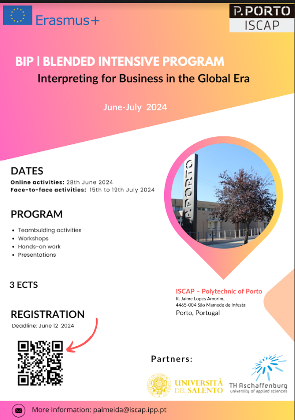ISCAP – Porto Accounting and Business School is hosting a Blended Intensive Course in Interpreting for Business in the Global Era, from 15 to 19 July.  Application by June 12