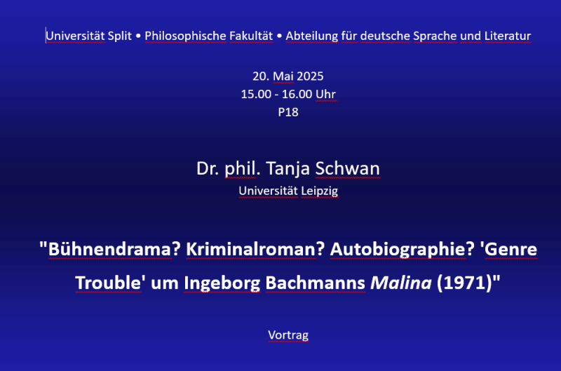U utorak, 15. 4. 2025. godine, na Odsjeku za njemački jezik i književnost gostovat će dr. Michaela Peroutkovà iz Praga (University of Life Sciences Prague). Predavanje će započeti u 15 sati u predavaonici P18.