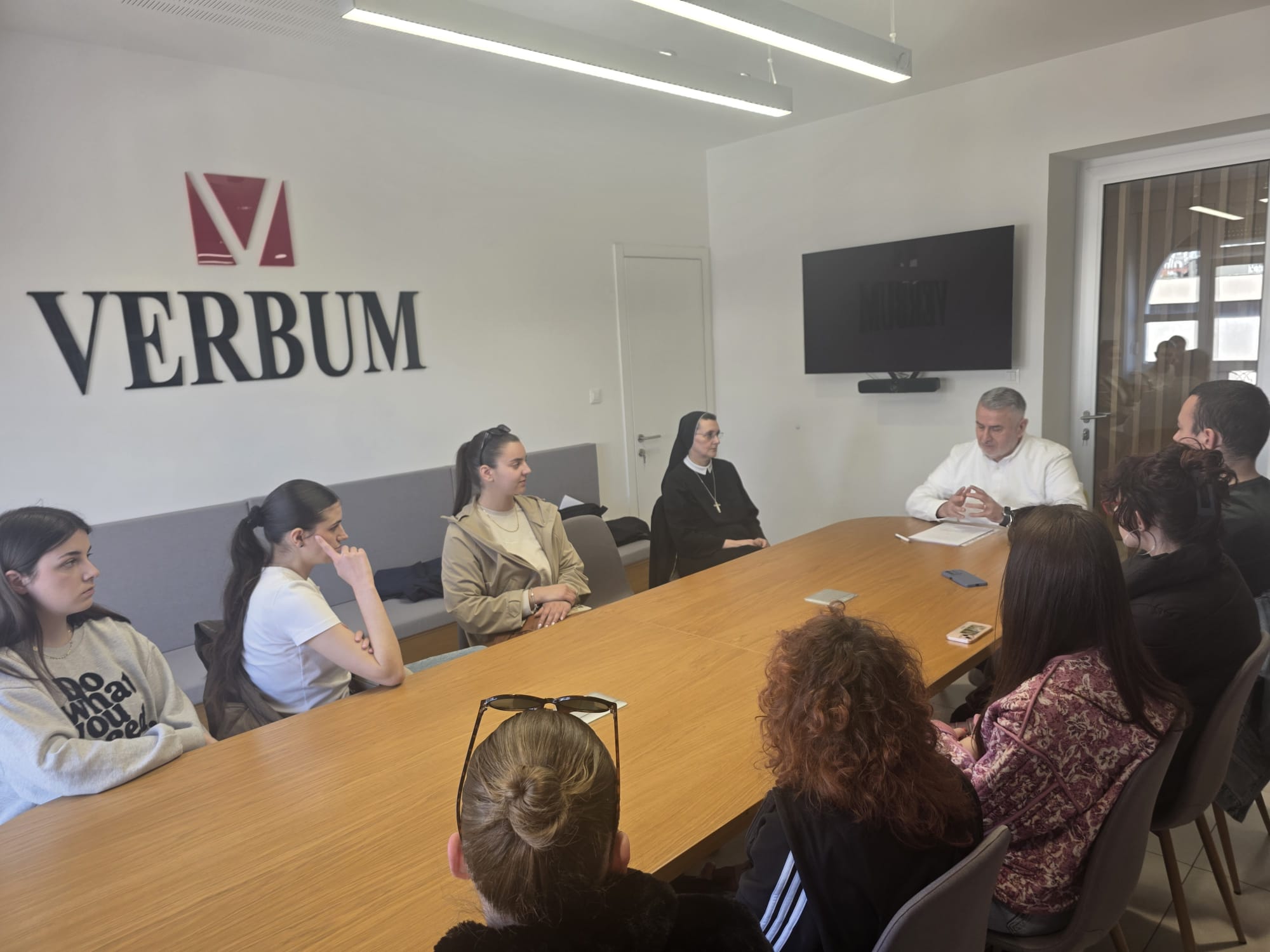 Studentice i studenti preddiplomskih studija pedagogije i sociologije su u okviru kolegija Medijska socijalizacija, 30. ožujka 2026. godine posjetili izdavačku kuću Verbum, u pratnji dr. sc. Marijane Ćuk i prof. dr. sc. Ivane Batarelo Kokić.