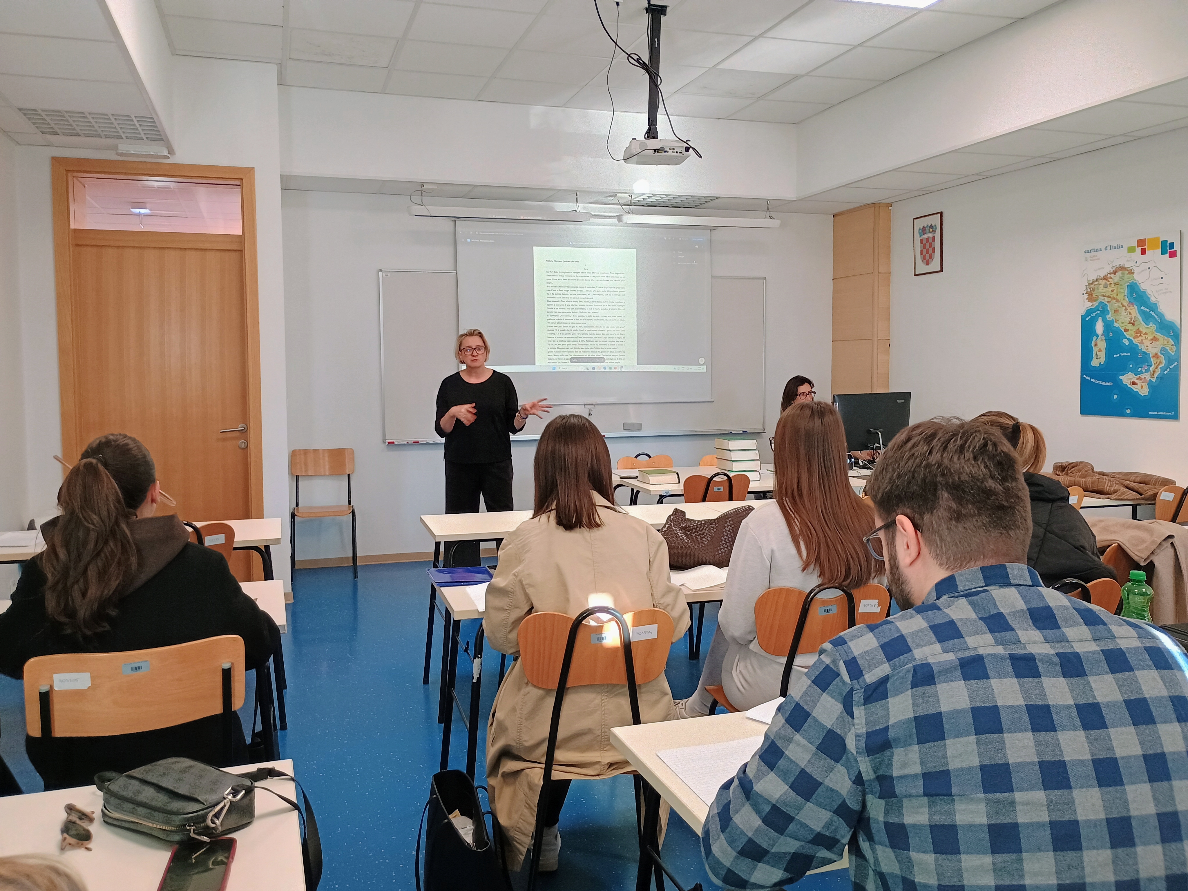 Nastava se izvodi na talijanskom jeziku, čime se uvjetuje dobro predznanje talijanskog jezika s ciljem što boljeg praćenja nastave i razumijevanja sadržaja kolegija, odnosno postavlja visoke standarde za stjecanje znanja, kao i za kasnije profesionalno usavršavanje.